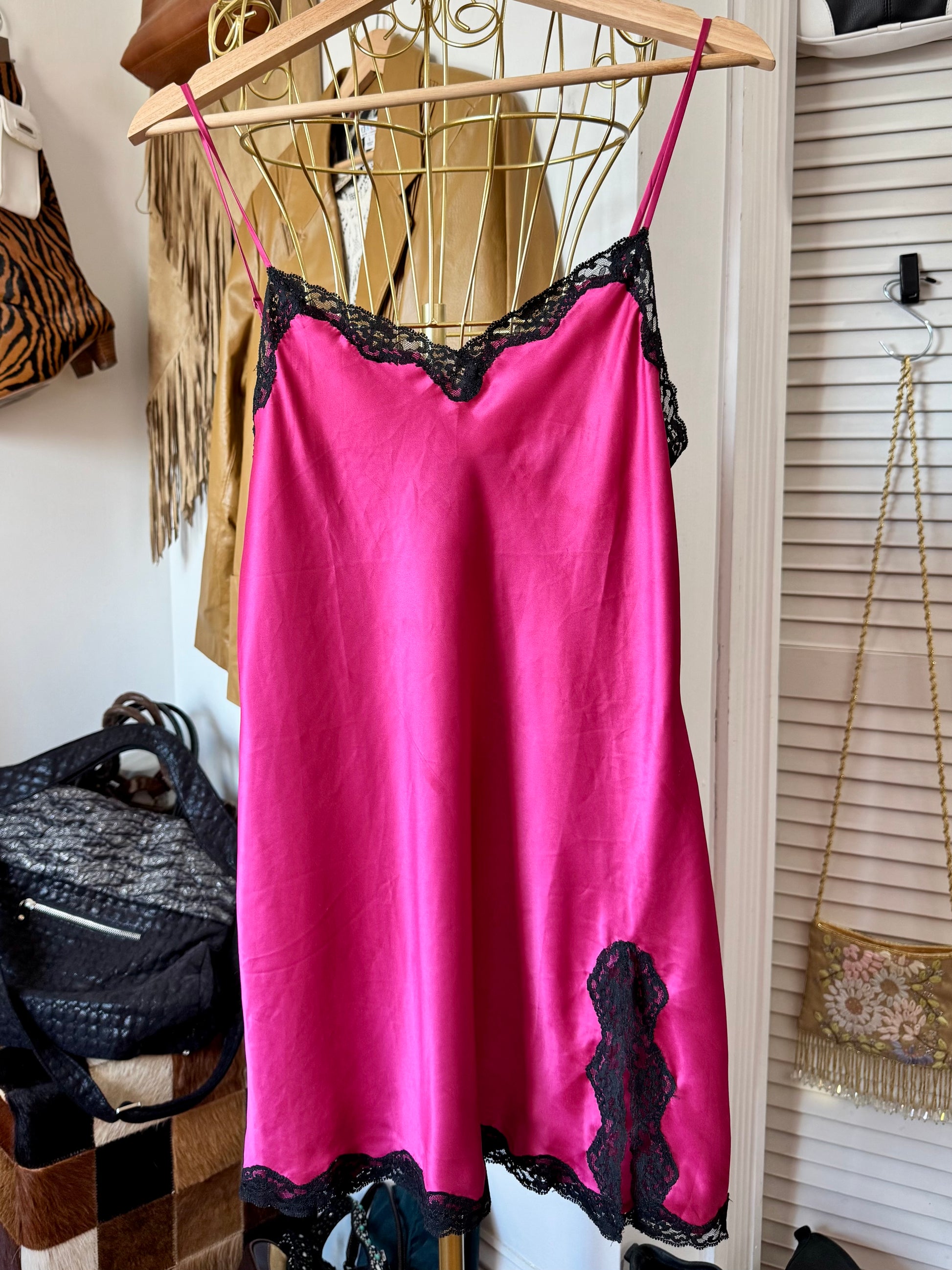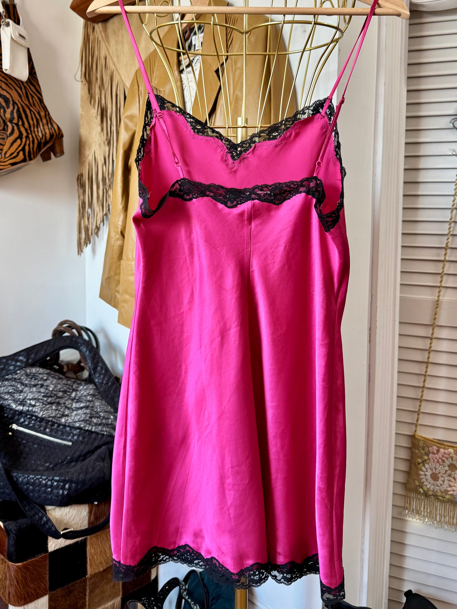 Bubblegum pink satin with dramatic black lace? This little number brings Y2K baddie meets glam goth energy.