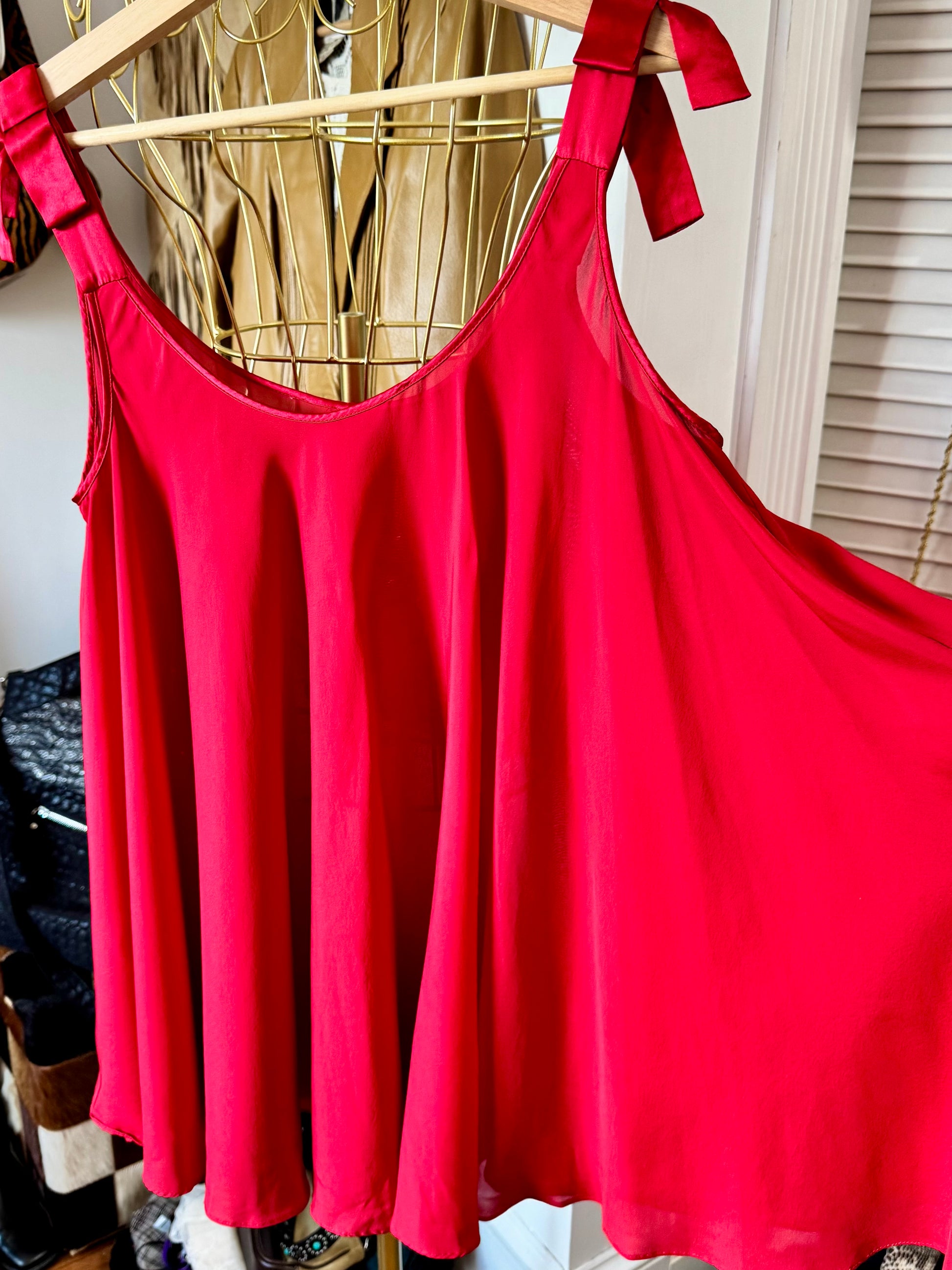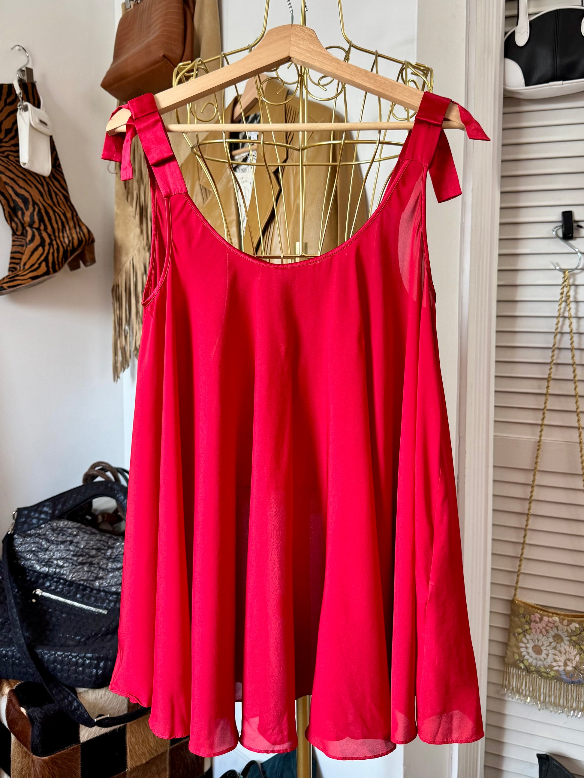 This sheer cherry red babydoll dress is as flirty as it gets—complete with delicate tie-shoulder straps and a twirl-worthy hem. Feels like love at first sight.