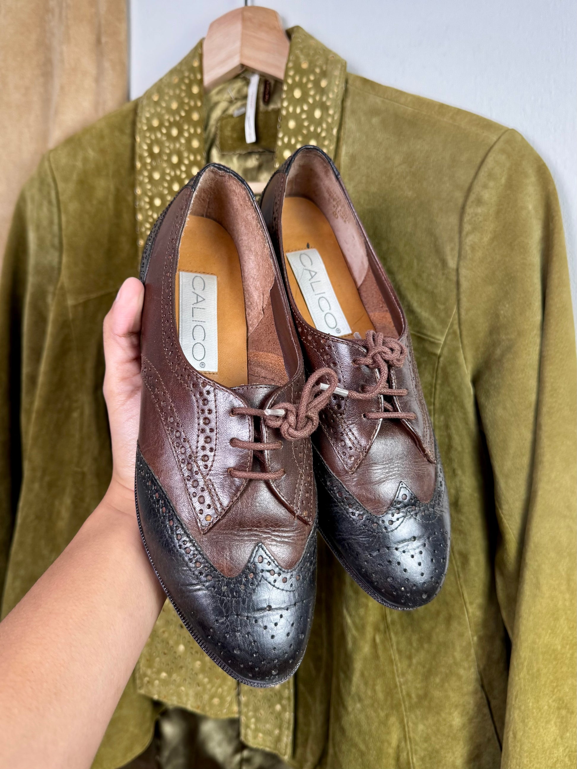 The Quince Loafers - Two-tone vintage oxfords in rich brown and black leather with brogue-style perforations and woven laces. Structured and timeless, they add instant character to any outfit.