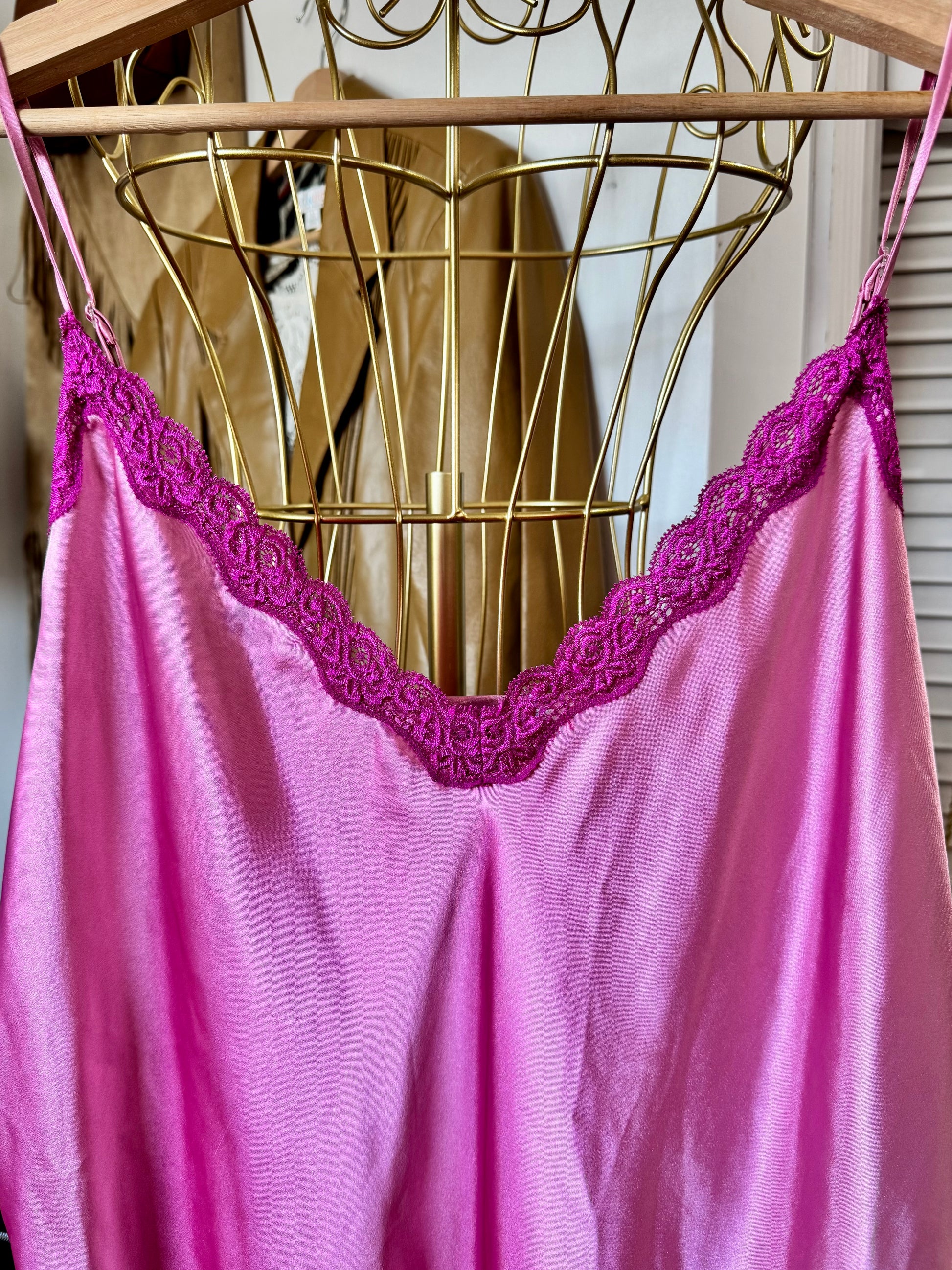 She’s soft, she’s shiny, and she has hot pink lace trim to match her flirty flavor. Giving major early 2000s sleepover energy.